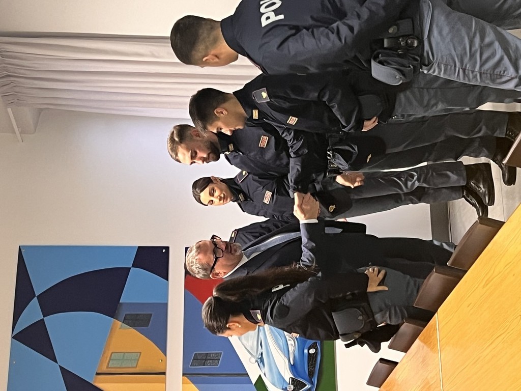Questore, vicario e funzionari augurano buon lavoro a tutti i nuovi arrivati.