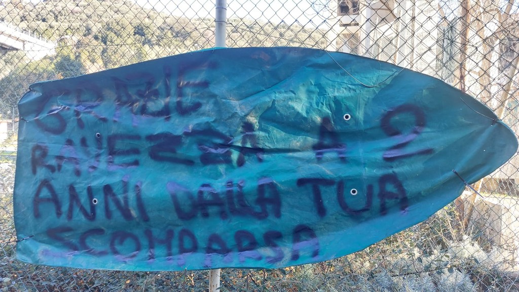 "Grazie Ravezza a 2 anni dalla tua scomparsa". Così si legge nei due striscioni posizionati per il secondo anno consecutivo da quando la passata amministrazione Mordeglia aveva deciso di trasformare lo storico campo da calcio di via Lavadore in un parcheggio per 365 giorni l'anno.
