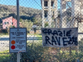 "Grazie Ravezza a 2 anni dalla tua scomparsa". Così si legge nei due striscioni posizionati per il secondo anno consecutivo da quando la passata amministrazione Mordeglia aveva deciso di trasformare lo storico campo da calcio di via Lavadore in un parcheggio per 365 giorni l'anno.