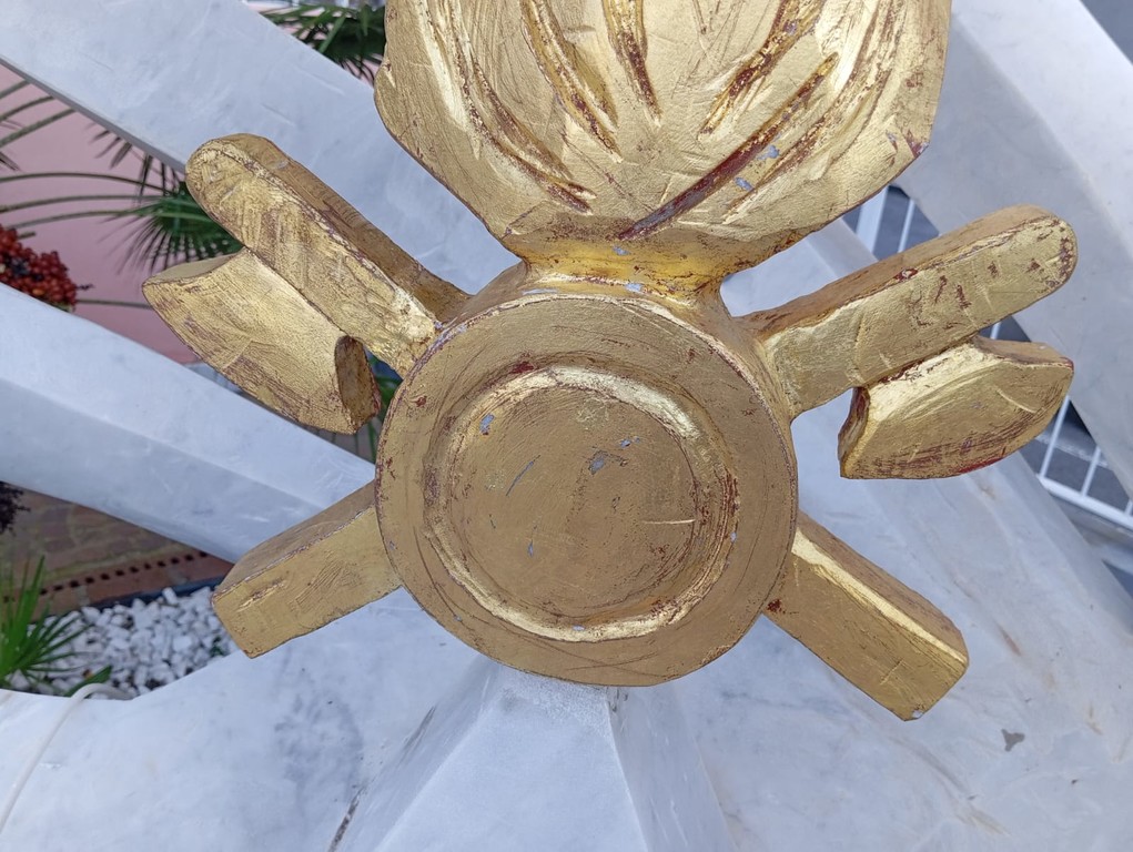 Ricavata dal pieno e ricoperta in oro zecchino 24 kt, pesa 9 tonnellate. Era stata concepita come una sorta di gabbia o protezione a forma di vortice tipo fiamma. "Chiamata "Corpo e anima", la scultura rappresenta le energie, nonché le anime dei defunti che in qualche modo proteggono lo stemma dei vigili del fuoco, richiamando allo stesso tempo l'immagine dei pompieri in servizio protetti dai colleghi deceduti" spiega l'artista.