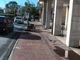 Il tratto di marciapiede risale agli anni ’70 ed è costituito da un pavimento in piastrelle di gres di colore rosso con cordolo in cls lato strada e sia il cordolo che la pavimentazione presentano rotture diffuse e mancanze dovute alla vetustà dell’infrastruttura con disallineamenti della pavimentazione che ad oggi non viene utilizzato dai pedoni, in quanto il camminamento principale è posizionato sotto ai portici.