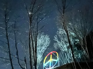 "Con l’intento di infondere un senso ed un messaggio di pace a tutti coloro che possono osservarla percorrendo la strada statale, quest’opera è stata realizzata in legno lavorato a mano senza ausilio di attrezzatura elettrica - spiega l'ideatore Marco Grillotti Scala Valente - Ha un diametro di circa 260 cm, composta da molte unità assemblate tra loro per un peso di circa 80 kg. Anche le tonalità scelte per la colorazione sono simbolo di opposizione non violenta alle guerre e di umanità".