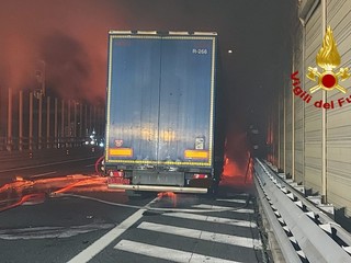 Tir in fiamme sull'autostrada A10, tra i caselli di Pra' e Arenzano, in direzione Ventimiglia. L'incendio è divampato nel tardo pomeriggio, poco prima dello svincolo con la A26.