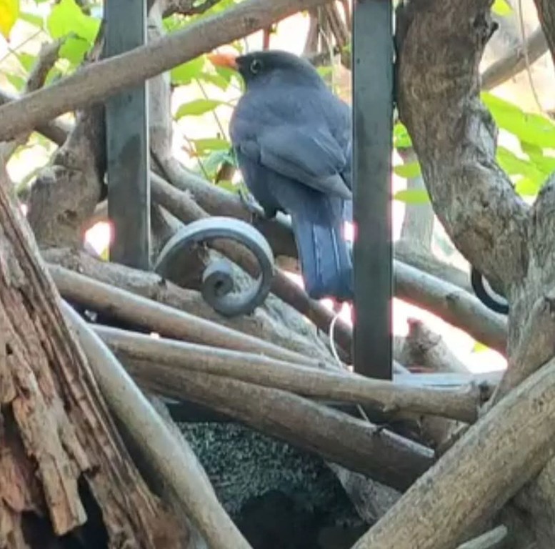 "Ho un merlo parlante su un ramo di un albero nel mio giardino a Noli. Ogni volta che cerco di fotografarlo o avvicinarmi per prenderlo, vola via urlando. Continua a ripetere: 'Ciao papà Pedro' e poi fischia fortissimo! Qualcuno lo sta cercando?"
