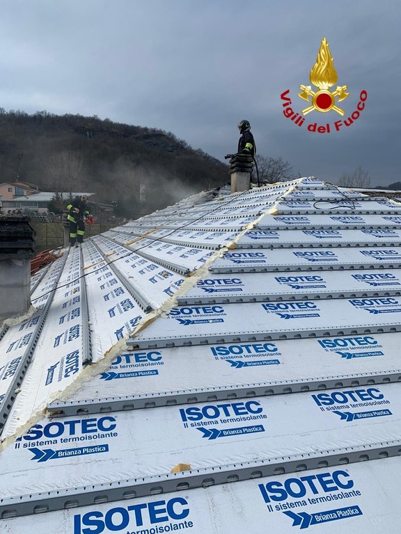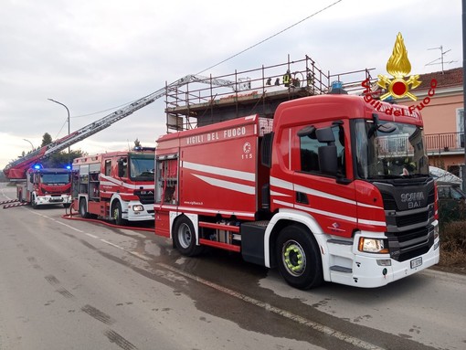 Incendio in Corso Marconi a Cairo Montenotte: tetto in costruzione in fiamme, Vigili del fuoco in azione