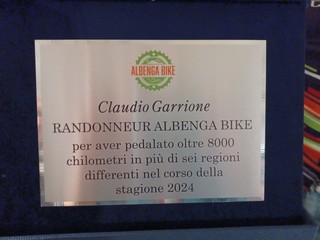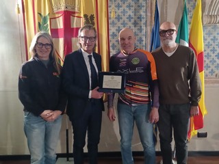 Ben 15.000 km percorsi in randonnée anche molto lunghe, pedalando giorno e notte e vivendo imprese a dir poco eccezionali. Claudio Garrione, classe 1960, è stato ricevuto ieri pomeriggio dal sindaco Riccardo Tomatis che, insieme a Roberta Bruzzone, Presidente dell’Albenga Bike, gli hanno voluto consegnare una targa di riconoscimento.