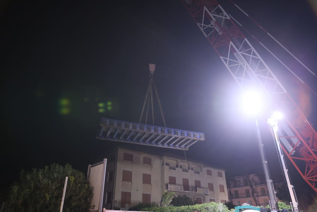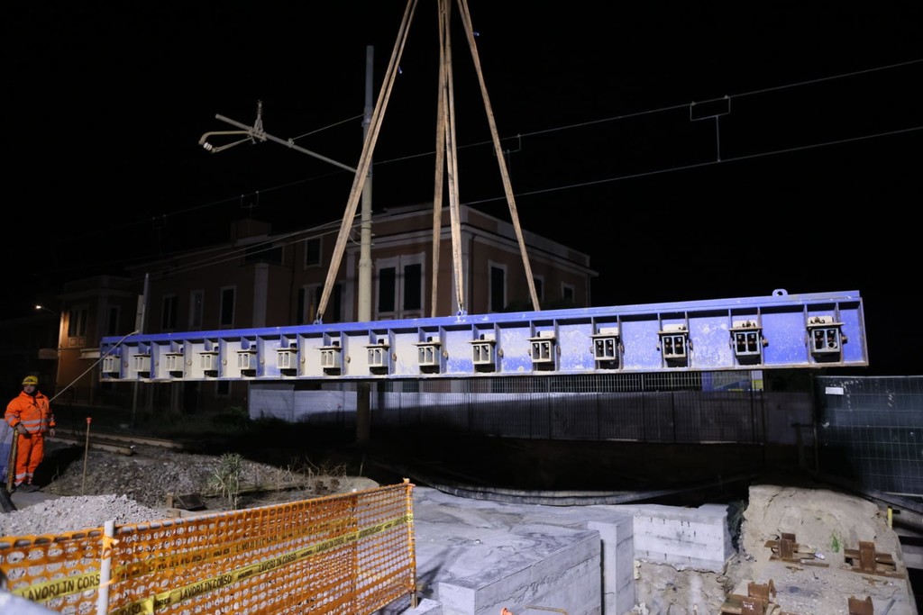 Demolizione delle pile vecchie, stanotte varo del ponte nuovo e domani sarà ricostruito il binario per far sì che lunedì 20 gennaio possano tornare a circolare i treni.