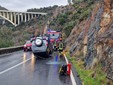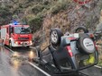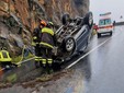 Un'auto ha perso il controllo schiantandosi probabilmente a causa dell'asfalto reso viscido dalla pioggia e si è cappottata. Immediati sono scattati i soccorsi a Varazze poco dopo le 10.30.