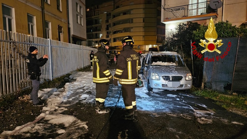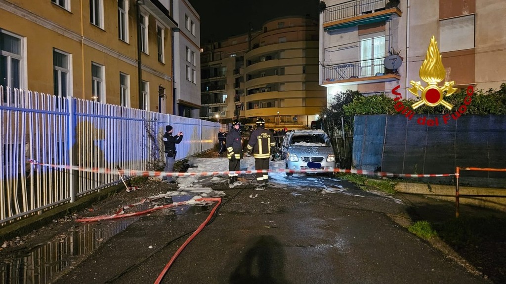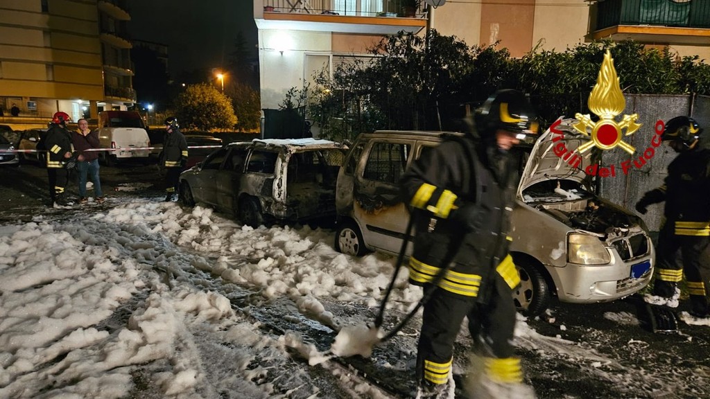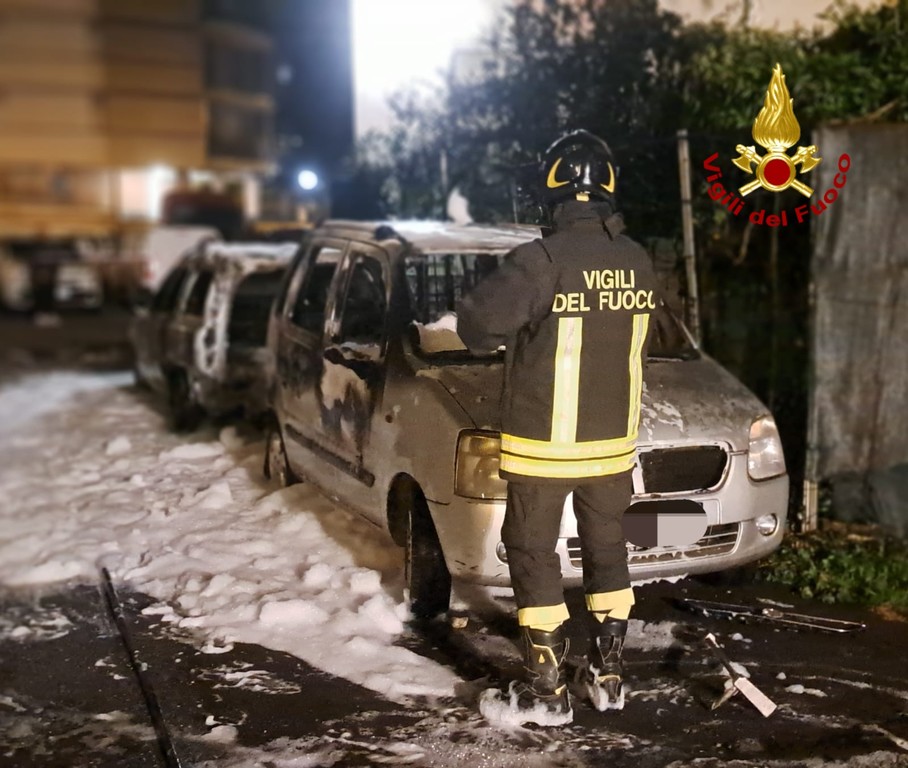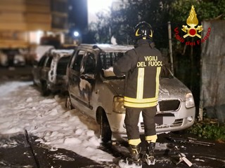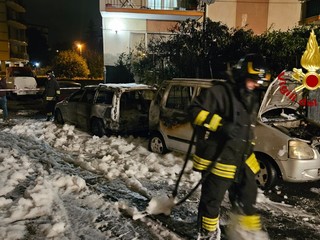 Vigili del Fuoco in azione a Savona, nella serata di ieri, per l'incendio di due autovetture.