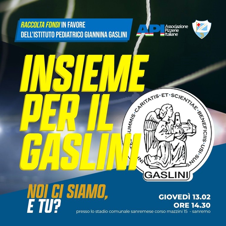 L’appuntamento principale è fissato per giovedì 13 febbraio alle ore 14.30 presso lo Stadio Comunale di Sanremo, dove si svolgerà una partita di calcio che vedrà affrontarsi la Nazionale A.P.I. contro una rappresentativa della Sanremese Calcio. L'ingresso sarà gratuito, ma sarà possibile offrire un contributo volontario, il cui ricavato sarà interamente devoluto al Gaslini, un istituto famoso per la cura e la ricerca nel campo della salute infantile.