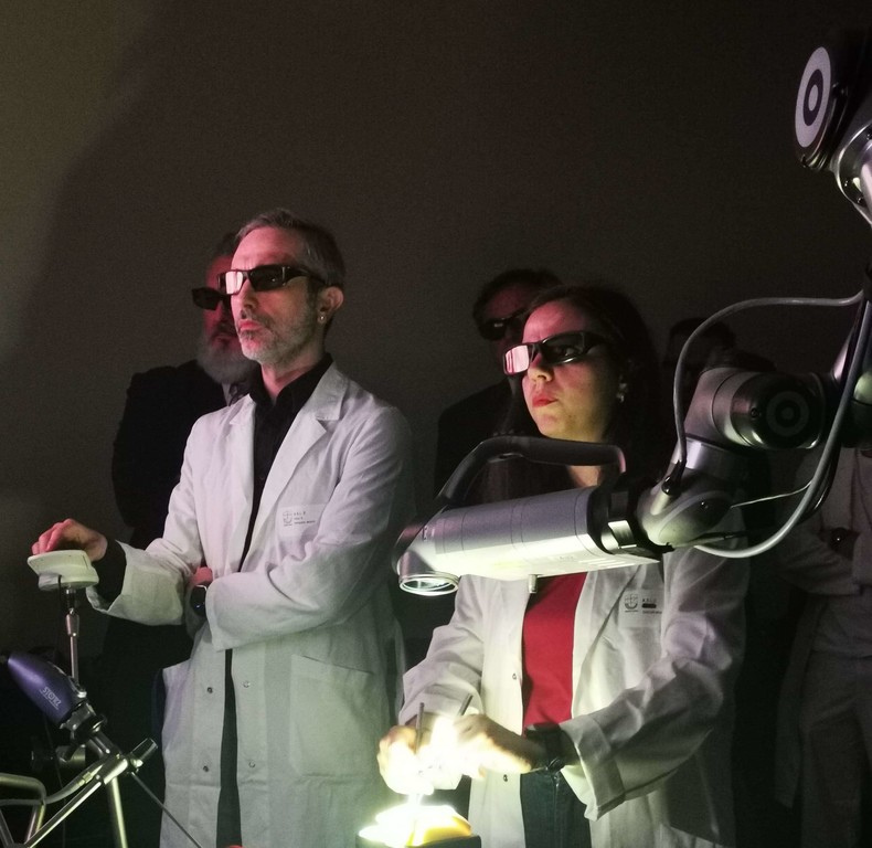 È stato presentato questa mattina all’ospedale Santa Corona di Pietra Ligure il nuovo Esoscopio Karl Storz, modello “Vitom Eagle”, nel corso di un evento dimostrativo ad alto contenuto tecnologico. Durante la presentazione, i presenti dotati di occhialini 3D hanno potuto osservare la visualizzazione esoscopica di un modellino virtuale di cervello, sperimentando in prima persona le potenzialità di questa innovativa apparecchiatura.