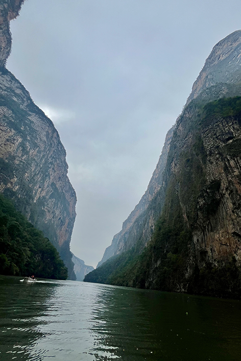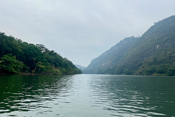 La mattina seguente, abbiamo lasciato la città per la prima tappa: il Canyon del Sumidero. Una piccola barca ci ha portato lungo le calme acque del fiume Grijalva, e presto le altissime pareti di roccia del canyon ci hanno sovrastato; è stato uno spettacolo maestoso, quasi intimidatorio. La natura è stata la protagonista indiscussa: cormorani hanno volato sopra le nostre teste, coccodrilli si sono mimetizzati lungo le rive, mentre la vegetazione lussureggiante si manifestava a tutto tondo. Durante le due ore di navigazione, il silenzio è stato rotto solo dal suono dell’acqua e dai richiami degli uccelli. Il Sumidero si è dimostrato, un vero e proprio paradiso naturale dove smarrirsi con occhi curiosi; unica nota dolente una grande quantità di plastica, abbandonata in alcuni punti.
