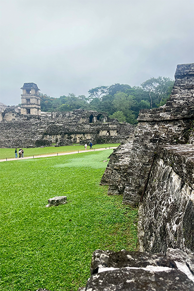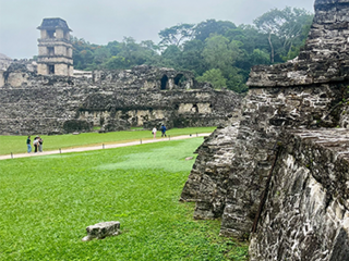 L’avventura si conclude a Palenque, uno dei siti maya più affascinanti di tutto il Messico. Siamo arrivati al mattino presto, quando le rovine erano ancora avvolte da una strana nebbia; i palazzi emergevano dalla vegetazione come visioni di un tempo lontano. Davanti al Tempio delle Iscrizioni, i geroglifici raccontavano storie di re, divinità e cicli naturali come se volessero stupire lo spettatore. Più tardi, un venditore ambulante ci ha mostrato delle pelli dipinte con i due calendari Maya: quello rituale e sacro composto da 260 giorni e quello solare di 365. L’uomo raccontava di come l’astrologia legasse ogni giorno ad un’energia cosmica che influenzava la vita e il destino. All’ora di pranzo, mi sono seduto a mangiare un frutto all’ombra del “Palazzo Reale", il silenzio e la pace sono stati una magnifica compagnia. Dopo aver terminato la visita, ci siamo immersi nella giungla con la nostra guida. Tra la vegetazione incontaminata, abbiamo scoperto piante medicinali e avvistato uccelli esotici, un’esperienza autentica che ha reso il tour ancora più magico ed inaspettato.