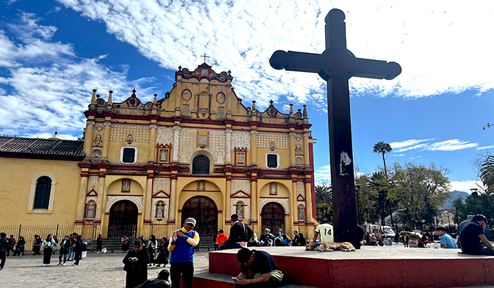 Poi il nostro viaggio è proseguito attraverso le strade di montagna; il paesaggio è cambiato rapidamente: promontori verdi, villaggi sonnolenti e un cielo che sembrava sempre più vicino. La nostra destinazione è stata San Cristóbal de las Casas, il cuore culturale del Chiapas; una cittadina situata a quasi 2000 metri di altitudine che ci ha accolti con la sua aria fresca, le strade acciottolate e le facciate color pastello. Ogni angolo raccontava una storia, ogni piazza pulsava di vita; abbiamo passeggiato per le sue vie, immergendoci in un’atmosfera colorata e vibrante. Nei mercati abbiamo trovato tessuti tradizionali, realizzati dalle mani delle donne indigene, e ci siamo fermati ad ammirare la splendida “Catedral” nella piazza centrale. Senza dimenticare un dopo cena, passato a sorseggiare un buon bicchiere di Mezcal; un distillato molto popolare in tutto il Messico.