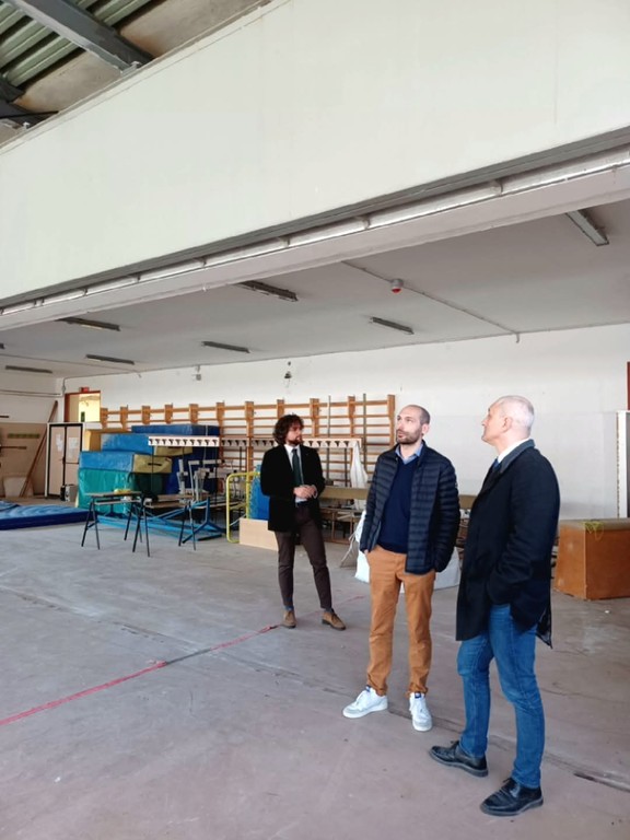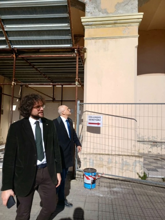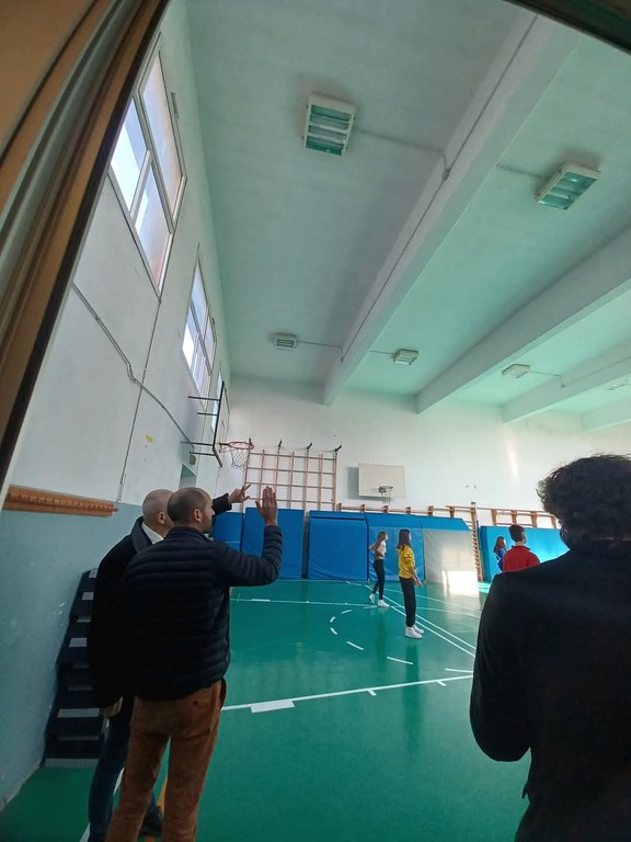 La visita è iniziata al Della Rovere, già oggetto di un miglioramento sismico grazie ai fondi PNRR, accompagnato da un relamping LED.