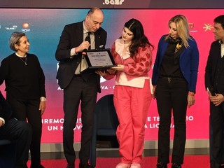 Ligyes ha consegnato ieri, alle 10.45, nella Lounge Bazr di Casa Sanremo, il riconoscimento alla giovane esordiente Maria Tomba (LEGGI QUI) portato a Sanremo dal sindaco di Alassio Marco Melgrati: “La musica è importante per i giovani. Un riconoscimento culturale che abbina audio e video e creatività. Maria Tomba è già un’artista completa: aspettiamo di vederla ad Alassio nel prossimo futuro”.