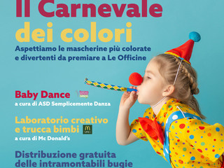 Si inizierà con la sfilata in maschera, a cui tutti i bimbi potranno partecipare, e al termine premiazione delle mascherine più eleganti, più simpatiche, più divertenti e molti altri premi, grazie alla collaborazione dei punti vendita presenti all’interno del Centro Polifunzionale Le Officine. L'iscrizione, da effettuare presso lo stand apposito, è gratuita!