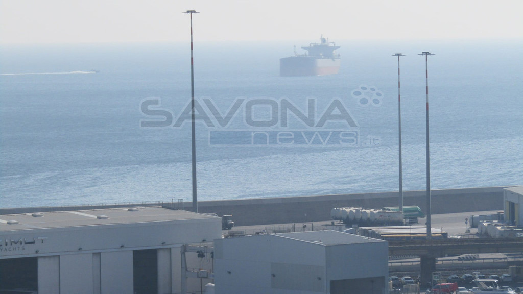 Si è spostata dal campo boe Sarpom tra Savona e Vado Ligure ed è ancorata di fronte al porto del capoluogo.