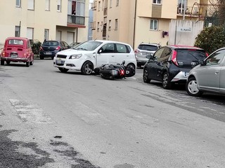 Savona, incidente in via Barbiani, scontro tra un'auto e uno scooter