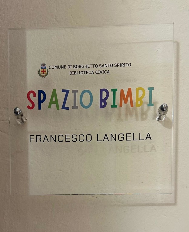 In concomitanza con la 28esima edizione del corso di aggiornamento “Letteratura per ragazzi/aggiornamenti”, alla biblioteca civica di Borghetto Santo Spirito è stato intitolato al dottor Francesco Langella lo “Spazio bimbi”, con una cerimonia alla quale hanno preso parte la moglie Laura col figlio Michele, i bambini delle scuole di borghettine e gli amici di Francesco e della biblioteca.