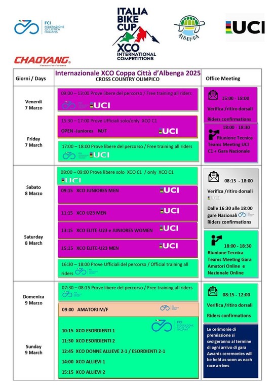 Domenica spazio al mattino per gli amatori, dalle ore 9:00, poi alle 10:15 inizieranno le prove giovanili che inizieranno il loro cammino nella challenge, a partire dagli Esordienti 1° anno, alle 11:30 i secondo anno, alle 12:45 le categorie femminili, alle 14:00 la prova Allievi 1° anno e alle 15:15 i secondo anno a chiusura della splendida due giorni di Campochiesa.