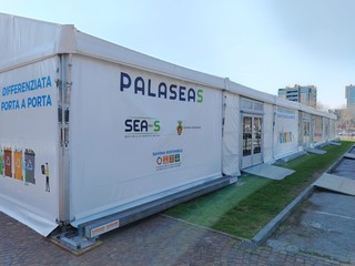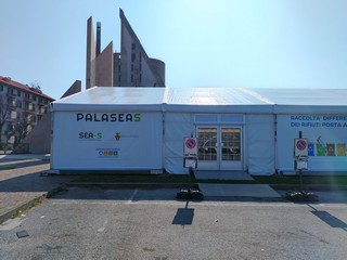Si chiama PalaSeas e sarà la sede degli incontri con la cittadinanza organizzati da Sea-S sul nuovo sistema di raccolta per le utenze domestiche. Per il montaggio della struttura sono stati occupati alcuni parcheggi in piazza del Popolo, con qualche protesta da parte dei cittadini per i posti auto che vengono a mancare (ma si tratterebbe di una cosa temporanea).