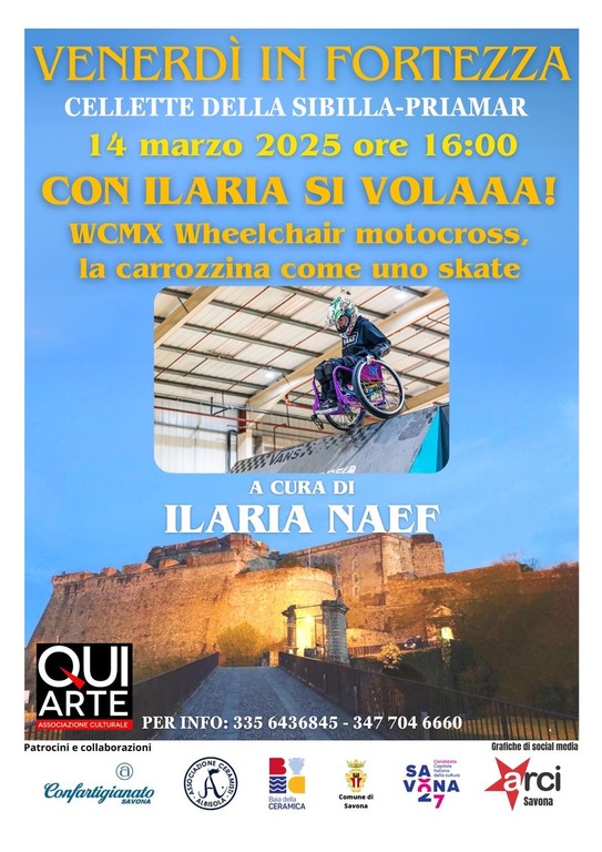 Venerdì 14 marzo, alle ore 16 a Savona, nell'ambito della rassegna "Venerdì in Fortezza", l'incontro con Ilaria Naef alle Cellette della Sibilla sul Priamar.