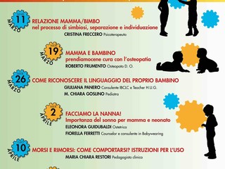 Il 2 aprile l'ostetrica Eleonora Guidubaldi e Fiorella Ferretti, counselor e consulente babywearing, terrà l'incontro "Fate la nanna! Importanza del sonno per mamma e neonato". Giovedì 10 aprile la pedagogista clinica Maria Chiara Restori parlerà di "Morsi e rimorsi: come comportarsi? Istruzioni per l'uso". Martedì 15 aprile la musicoterapeuta Anna Tusti Boesso tratterà "Il dialogo tra le parti nella relazione madre e bambino".