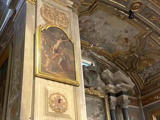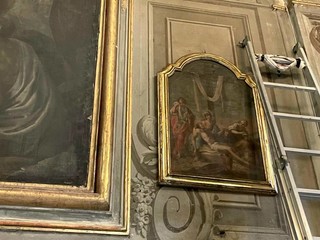 Una minima integrazione pittorica, condotta a velatura e a spuntinato, ha eliminato le piccole e medie lacune. Tutte le cornici sono state pulite, trattate con antitarlo, consolidate negli angoli più deboli e integrate pittoricamente nelle piccole lacune e nelle abrasioni che arrecavano disturbo visivo. Infine, il lavoro è stato concluso con una verniciatura totale e una revisione dei sistemi di aggancio.