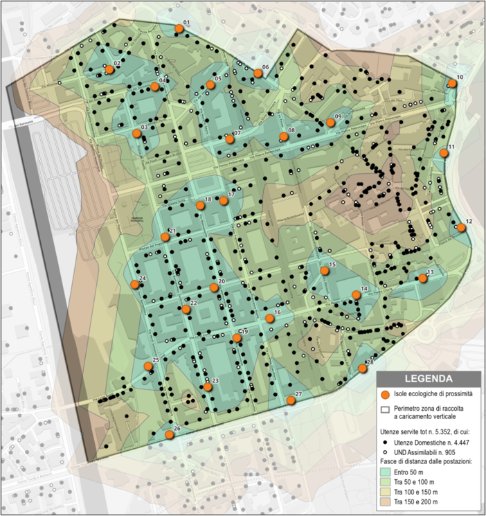 Il nuovo sistema di raccolta prevede i cosiddetti cassonetti intelligenti nelle aree centrali (tra Corso Mazzini, via Gramsci, via Pietro Giuria, via dei Mille, via Sormano, Piazza del Popolo e via XX Settembre) che saranno aperti con un badge e saranno presenti 28 "isole ecologiche intelligenti" (con una fascia di distanza massima abitazione/postazione di 200 metri). In totale sono 4.447 le utenze domestiche e 905 le utenze non domestiche assimilabili.