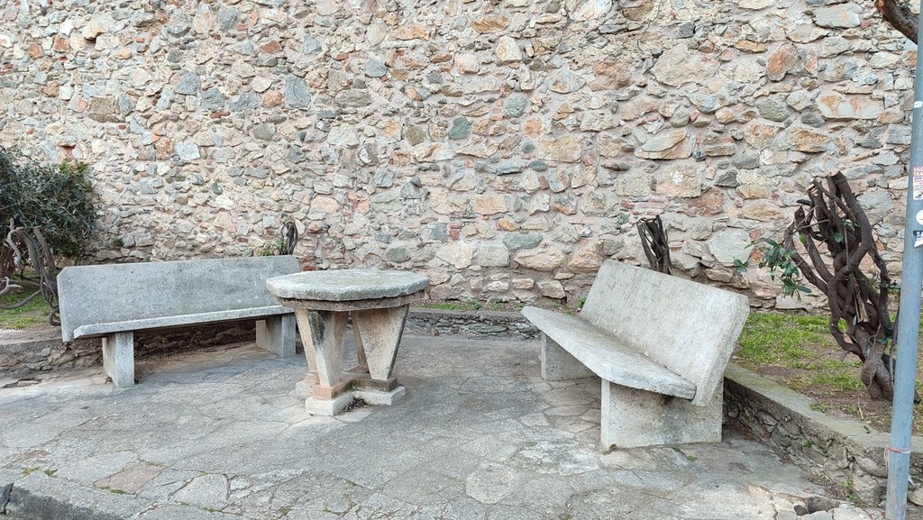 La pianta, di cui ora rimane il fusto tagliato molto basso, ha le sue radici nell'aiuola che costeggia la cinta muraria del borgo medievale tra i più belli d'Italia. E proprio sulle mura si arrampicava oltre a poggiare su di una pergola a coprire una seduta composta di tavolini e panche in pietra.
