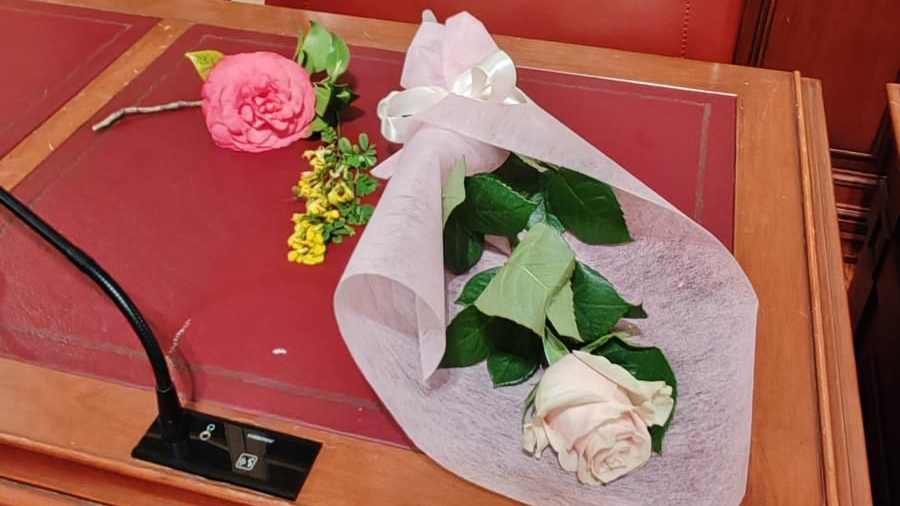 Una rosa rosa al suo posto e tanta commozione negli occhi lucidi del sindaco Berlangieri e dei colleghi tutti, di maggioranza ma anche di opposizione.