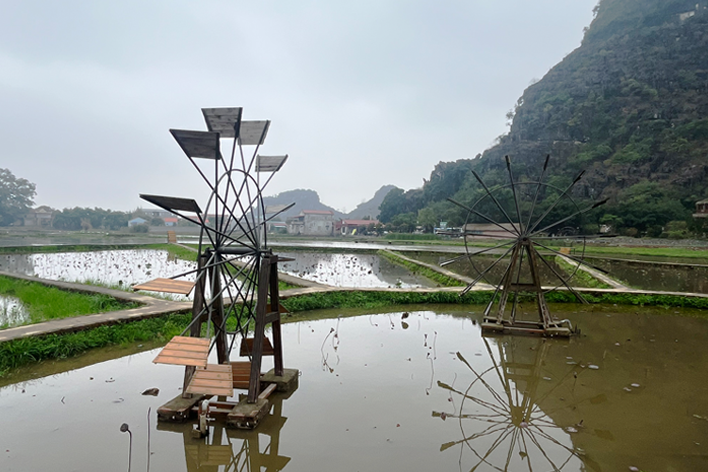 Siamo partiti dalla zona di Ninh Binh, a circa due ore di macchina da Hanoi, dove le formazioni carsiche si innalzano maestose lungo i fiumi silenziosi. A Tam Coc, le barche ci hanno condotti tra risaie sommerse e scogliere calcaree che si specchiavano sull’acqua. Ci siamo accorti subito di qualcosa di curioso: la donna che remava lo faceva con i piedi. Seduta in fondo alla barca, ha incrociato le gambe sui remi e li ha mossi con calma e precisione, come se fosse la cosa più naturale del mondo. Non è stato solo uno spettacolo: ha usato la forza delle gambe per risparmiare fatica, lasciando le mani libere per sistemarsi il cappello e bere un sorso di tè. Ci ha sorriso, come a dire: “Qui si è sempre fatto così.” E in quel gesto ho riconosciuto tutta la saggezza semplice della vita sul fiume.