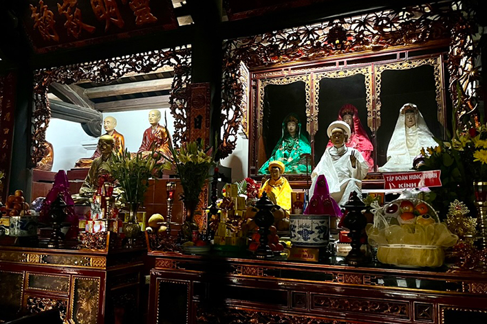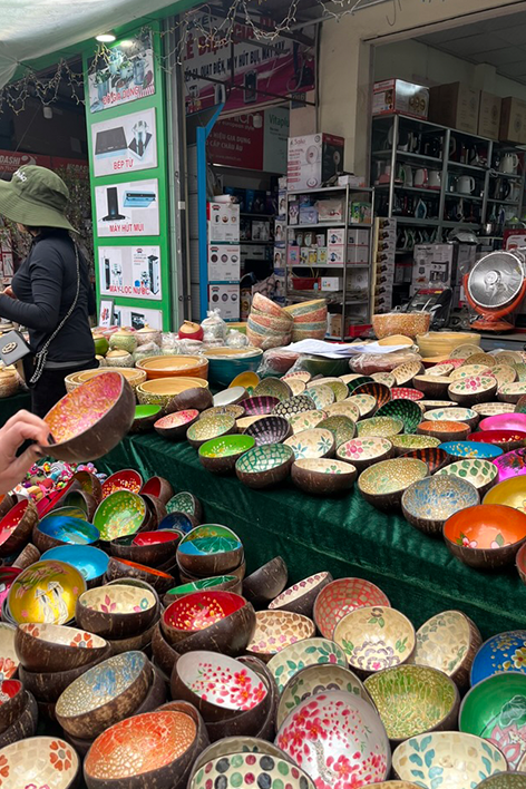 Il nostro viaggio ha raggiunto poi la capitale Hanoi, una città in pieno fermento. Il traffico mi è sembrato quasi una coreografia urbana, dove l’unica regola è il movimento costante. Attraversare una strada mi ha fatto sentire parte di qualcosa di caotico, ma profondamente vivo. Nel Quartiere Vecchio ci siamo ritrovati davanti case che si arrampicano verso l’alto, strette tra fili elettrici e balconi di piante. Ma accanto alle botteghe storiche, ho notato il moltiplicarsi di agenzie turistiche, centri massaggi e negozi che vendevano brand occidentali contraffatti. Ad Hanoi, il volto più autentico l’ho trovato nei mercati di strada. Lì, il Vietnam si è mostrato senza filtri: carne fresca appesa a ganci metallici, pesce ancora guizzante in bacinelle d’acqua, verdure colorate disposte su piccoli banchi improvvisati, spesso con solo un telo per terra. Le venditrici, con i tipici cappelli a cono, pesavano con bilance manuali e contrattavano con voce ferma. Qui non c’era spettacolo per il turista: c’era solo la vita, quella vera, che scorre tra un passaggio di monete e il suono di un coltello che batte sul tagliere. Passeggiando tra i vicoli, spesso si scorgevano piccoli altari nascosti nei portoni o negli angoli delle case. Un gesto silenzioso, quotidiano, che racconta il legame spirituale del popolo vietnamita con chi non c’è più.