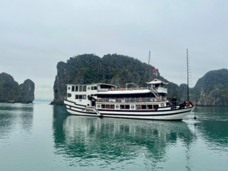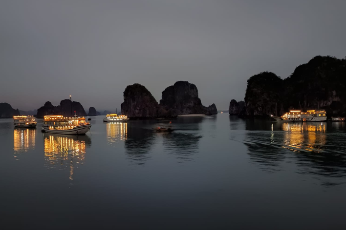 Il viaggio si è concluso con una crociera nella baia di Ha Long, tra acque placide e formazioni rocciose spettacolari, patrimonio dell’UNESCO. Abbiamo visitato grotte nascoste e fatto kayak. Gli isolotti si succedevano come sculture naturali, ognuno con la propria forma: alcuni ricordavano teste d’animali, altri colline verdi. Ogni curva della baia nascondeva una nuova meraviglia. La sera, la piccola nave ha gettato l’ancora in una baia riparata. Abbiamo cenato con pesce fresco, verdure, riso profumato. Nessuna connessione internet, solo il fruscio dell’acqua contro lo scafo e il riflesso delle luci sulle onde. Abbiamo dormito cullati dal rollio lento della barca. Nessun rumore, nessun faro. Solo la sensazione di essere lontani da tutto, circondati da montagne di pietra in mezzo al mare. Anche qui, però, il turismo di massa ha cominciato a farsi sentire. L’esperienza immersiva, a tratti, mi è sembrata ben confezionata.