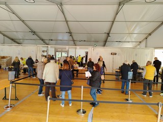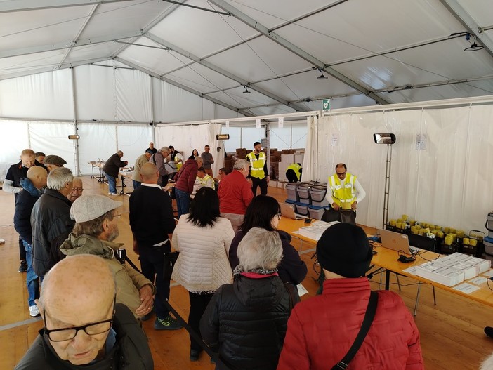 Questa mattina diversi cittadini sono arrivati alla spicciolata in via Pietragrossa a Legino nell'area ex Csi e in centro al Palaseas di Piazza del Popolo per ricevere i bidoni e i sacchetti divisi per le zone della periferia e delle case sparse. Non è andata in atto una vera e propria corsa al kit come era stato consigliato durante gli incontri per evitare il sovraccarico degli addetti che divisi in più sportello acquisiscono il codice a barre della lettera inviata ai cittadini e poi consegnano il materiale.