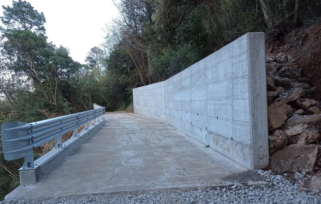 Nell’ambito dell’intervento di messa in sicurezza, ancora in fase di ultimazione, si è conclusa la stabilizzazione di un versante a valle della strada per un tratto di circa 40 metri mediante micropali, protetta a monte da un muro di contenimento: i lavori sono stati eseguiti dall'impresa Ecogrid, con un progetto esecutivo redatto dall'ingegnere Fulvio Fusini e l’iter amministrativo condotto dall’Ufficio Tecnico comunale.
