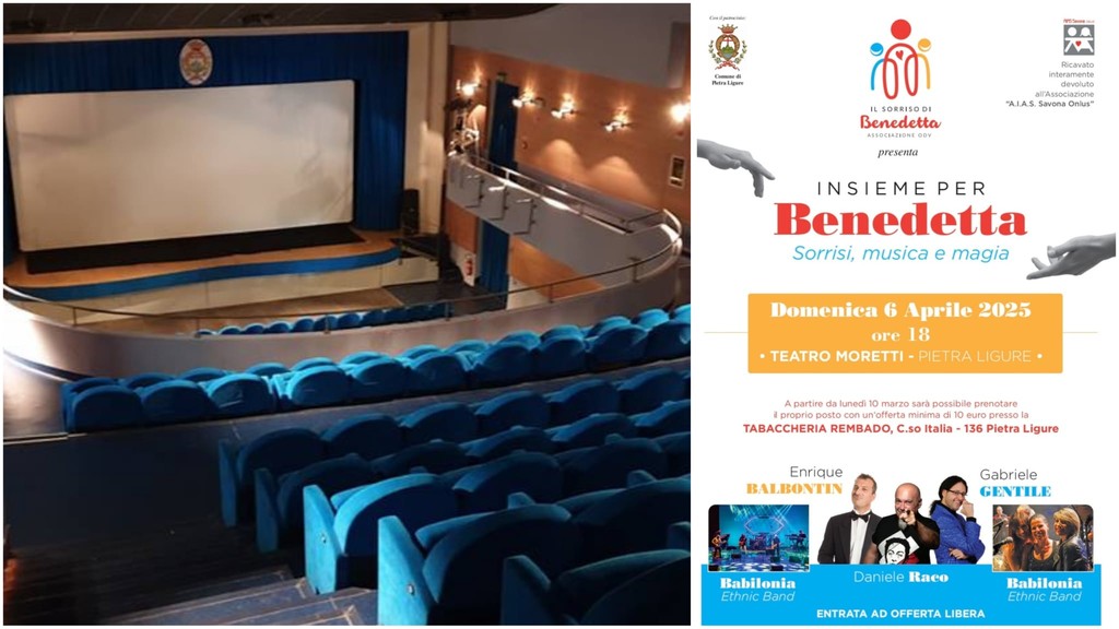 Organizzata dall'Associazione “Il Sorriso di Benedetta ODV” con il patrocinio del Comune, la serata avrà uno scopo benefico: l’intero ricavato sarà devoluto al Centro A.I.A.S. di Savona, punto di riferimento nella riabilitazione neuromotoria per persone con disabilità motorie, psichiche, cognitive e comunicative, sia transitorie che permanenti.