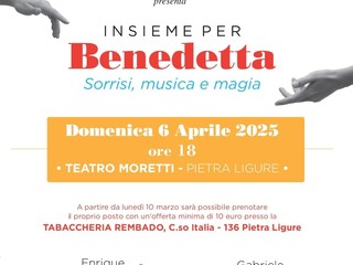 Mancano ormai pochi giorni all'appuntamento con “Insieme per Benedetta”, l’evento di musica, magia e comicità che si terrà domenica 6 aprile alle ore 18.00 al Teatro Moretti.