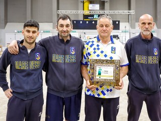 Il trofeo più prestigioso e ambito, quello della storica gara a quadrette (231 al via) è finito, per la prima volta, nella bacheca della Bocce Mondovì grazie a Luca Baccino, Mauro Renato Carello, Giorgio Cavallo e Guillermo Sebastian Montemerlo, i quali al termine di un’infinita finale hanno avuto la meglio per 8-7 sui trevigiani della Marenese di Mareno di Piave (Ivan Soligon, Lino Frare, Alessandro Porello e Franco Soligon). Per la formazione cuneese prestazioni da album dei ricordi per Carello e per l’argentino Montemerlo (due titoli mondiali all’attivo), premiati rispettivamente con il Memorial Arrigo Caudera e il Memorial Beppe Andreoli quali miglior puntatore e miglior bocciatore. Per il comprensorio monregalese non si tratta del primo trionfo assoluto nella Targa d’oro. Nell’ormai lontano 1994 ad alzare il trofeo erano stati infatti Gonella-Ferraro-Broccardo-Lubatti (Le Valli Monregalesi di Niella Tanaro). Sul podio 2025 sono salite altre due compagini piemontesi: i campioni uscenti della Perosina (Collet, Janzic, Mana e Data) e la Brb Ivrea (Capello, Graziano, Nari, Maina), questi ultimi superati al fotofinish in semifinale da Baccino e compagni. Migliore tra le formazioni liguri, ancora una volta, la Chiavarese (Bunino, Griva, Zucca, Bresciano), eliminata nei quarti.