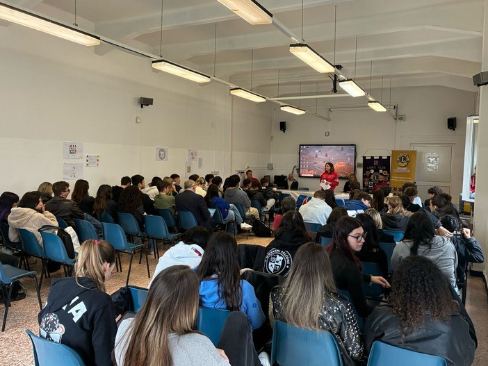 L'evento, dedicato alle classi quinte, ha visto presenti circa 130 studenti ed è stato organizzato da Massimo Telese, socio Lions Loano e Consigliere dell'associazione Amici Banca degli Occhi Lions.