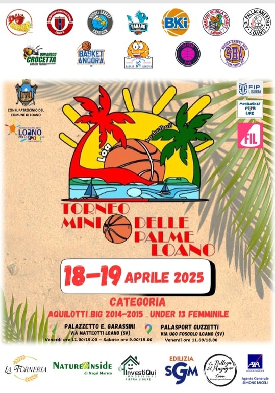 Venerdì 18 e sabato 19 aprile, Loano diventa la capitale del minibasket con la seconda edizione del "Torneo Mini delle Palme", una due giorni dedicata al minibasket giovanile. L’organizzazione è curata da Basket Loano Garassini e Pallacanestro Loano.