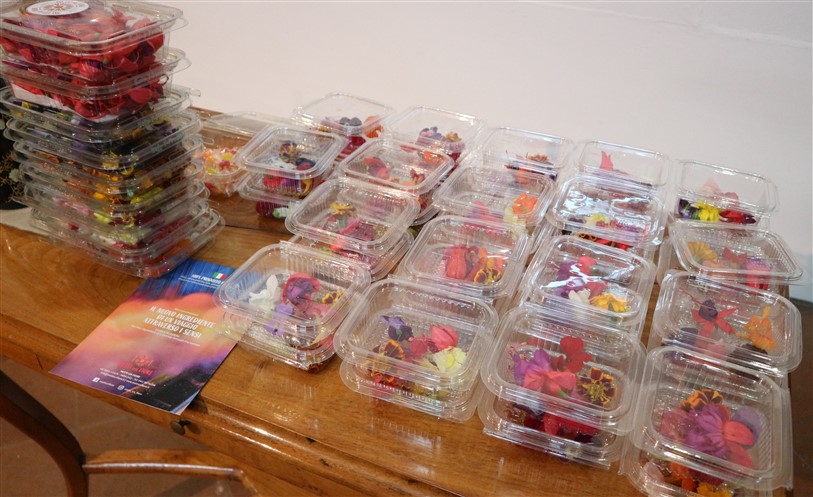 Nel corso dell’incontro è stata presentata una panoramica sui principali fiori disponibili e una degustazione di 5 varietà di fiori offerti dall’azienda L'INSALATA DELL'ORTO / METTI UN FIORE (https://www.mettiunfiore.it/)