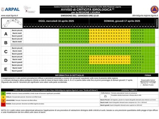 Arpal ha emesso allerta gialla per i possibili effetti di piogge e temporali dalle 00 alle 15 di domani giovedì 17 aprile, su tutti i bacini del ponente (Zone A e D); nello stesso orario, solo allerta gialla temporali sul centro (Zona B).