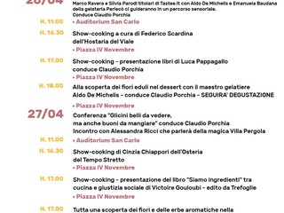 Fior d’Albenga ospiterà nel weekend del 26 e 27 aprile il “Festival nazionale della cucina con i fiori”, ideato e diretto dal giornalista Claudio Porchia. Durante questo evento, chef famosi come Luca Pappagallo e Victoire Gouloubi, presenteranno piatti originali con l’utilizzo di fiori eduli, in un programma che prevede laboratori di cucina, degustazioni e presentazione di libri.