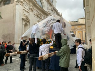 "Le sensazioni nel 2014 erano diverse, questa volta avevamo una cassa appena uscita dal restauro (la "Deposizione dalla Croce") e farla uscire in quelle condizioni meteo era impensabile - ha commento Bertola - 11 anni fa eravano piovute solo due gocce mentre stavamo arrivando in Corso Italia e allora abbiamo tirato dritto per arrivare al più presto".
