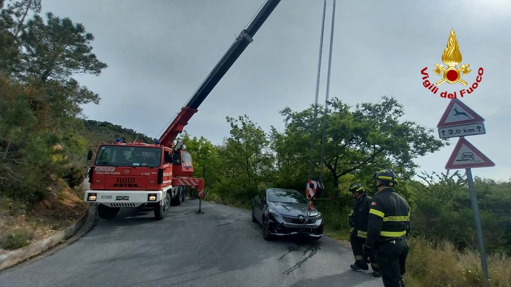 Cisano, auto fuori strada finisce in una scarpata: nessun ferito