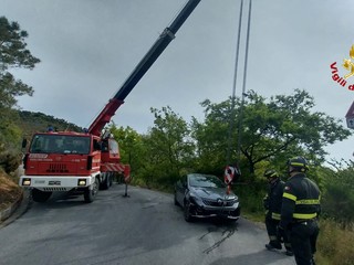 Cisano, auto fuori strada finisce in una scarpata: nessun ferito