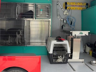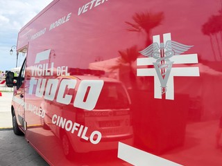 Particolare attenzione ha suscitato la clinica veterinaria mobile, un mezzo allestito specificamente per fornire assistenza sanitaria ai cani impegnati nelle emergenze. Si tratta di un’unità unica nel suo genere, non solo in Italia ma anche a livello europeo: un vero e proprio ospedale su ruote, progettato per operare direttamente nei luoghi colpiti da disastri naturali, garantendo cure tempestive e specialistiche ai cani da soccorso.