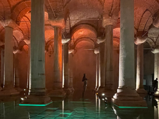 Una volta sulla riva europea, il tono cambia. La Moschea Blu, con le sue cupole armoniche, è nascosta da restauri che sembrano infiniti. Si intravede, come un volto dietro un velo. Poco distante, Santa Sofia racconta il passaggio della storia: chiesa, moschea, museo e di nuovo moschea. Oggi è accessibile solo dal piano superiore per i non musulmani. Il contrasto tra i fedeli in preghiera e i visitatori rumorosi dice molto del presente. Il pavimento in marmo, le calligrafie dorate, i mosaici bizantini creano un’atmosfera sospesa tra fede, arte e potere. Poi si scende, sotto terra, dove si nasconde una delle sorprese più emozionanti: la Basilica Cisterna. Le colonne si mostrano imponenti, la luce è tenue, l’atmosfera quasi mistica. Si ha l’impressione di entrare in un mondo parallelo, un luogo protetto, dove il tempo si è fermato. Le gocce d’acqua cadono dal soffitto ritmicamente e l’eco dei passi accompagna la visita, in un silenzio che parla. È uno dei luoghi più intimi della città, un invito alla lentezza, alla riflessione. Qui Istanbul non si mostra, si lascia sentire. Il Gran Bazar, con le sue cupole e i suoi corridoi affollati, oggi è più una scenografia che un mercato vivo. Ha perso parte delle sue origini. Le voci autentiche si confondono con i richiami costruiti per il turista, i prezzi sono gonfiati, le contrattazioni spesso inscenate. È un luogo che affascina più per la sua architettura che per la sua funzione: uno spettacolo visivo, più bello da vedere che da vivere.